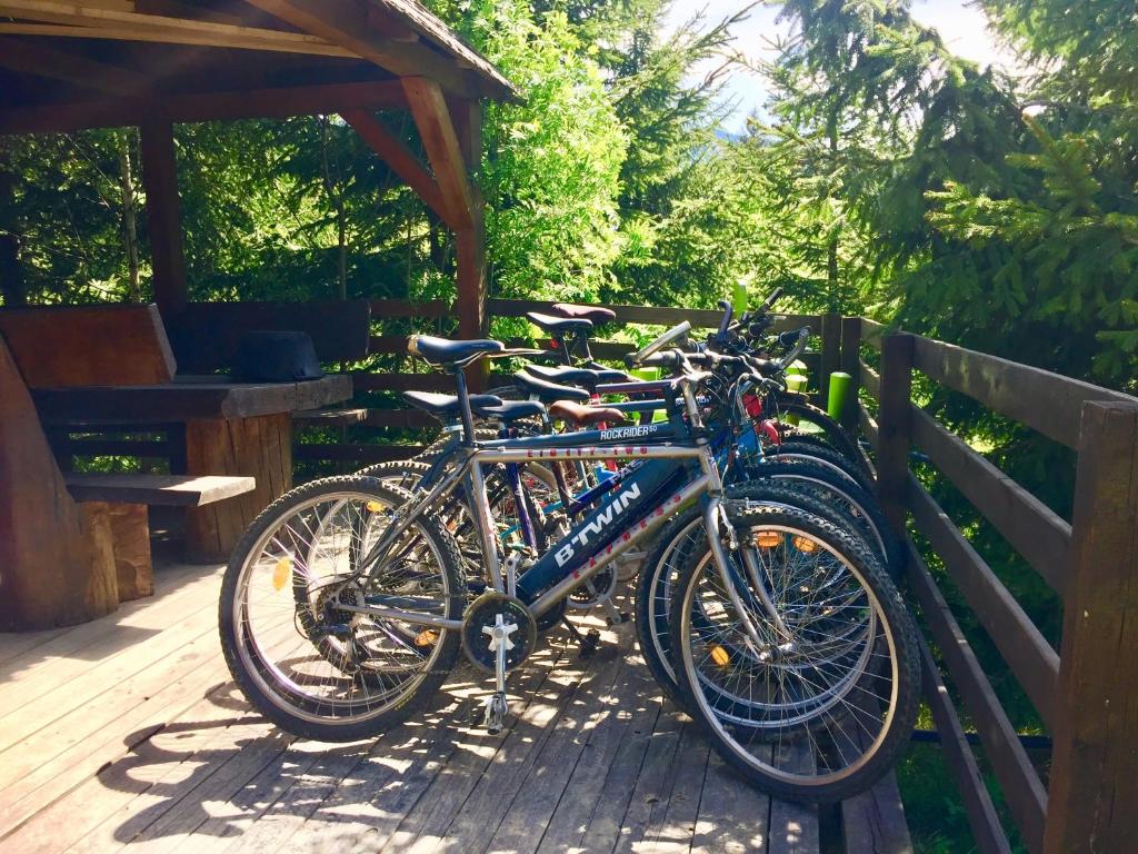 Locatia ofera si WiFi gratuit. Terasele sunt echipate cu mobilier de exterior - mese si bancute de lemn masiv, umbrele de soare, sezlonguri. Oaspetii Casei dintre Brazi beneficiaza de biciclete incluse in pretul camerei, in functie de disponibilitate - momentan sunt disponibile 9 biciclete.