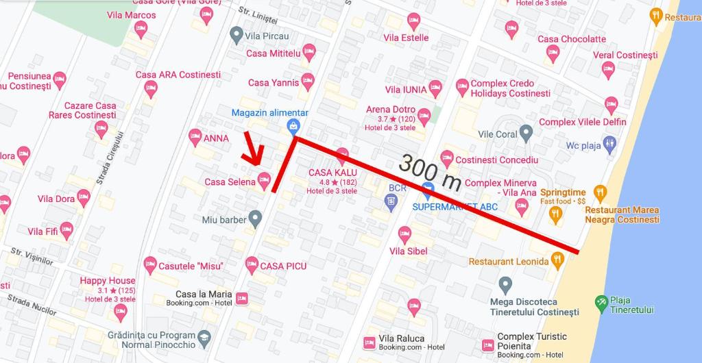 Casa Selena se găsește în Costineşti, la 7 minute de mers pe jos de Plaja Costinești, și are o grădină, o terasă și parcare privată. Proprietatea se află la aproximativ 33 km de Piaţa Ovidiu, la 40 km de City Park Mall & Cora Hypermarket și la 46 km de Lacul Siutghiol. Proprietatea oferă o bucătărie comună și WiFi gratuit în întreaga proprietate.