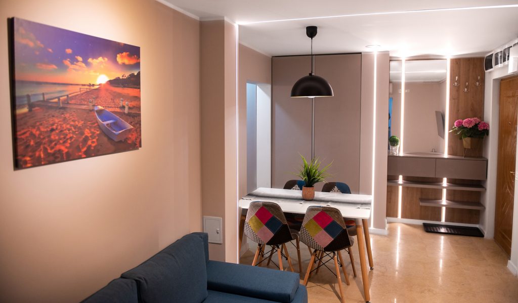 Zonă de Dining: Un spațiu dedicat pentru servirea mesei, perfect pentru momentele petrecute alături de familie sau prieteni.