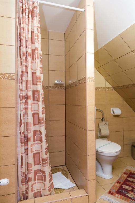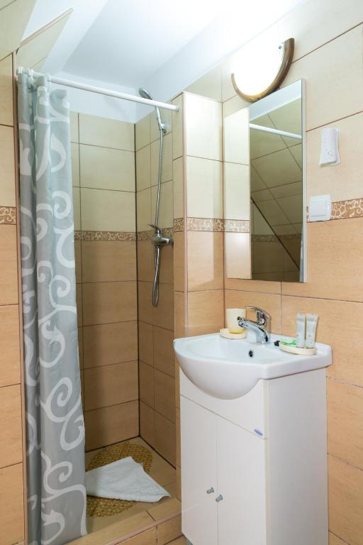 Camerele Pensiunii Casa Richter- Check-in Independent au baie privată cu duş, TV prin cablu şi uscător de păr. Se asigură și articole de toaletă gratuite.