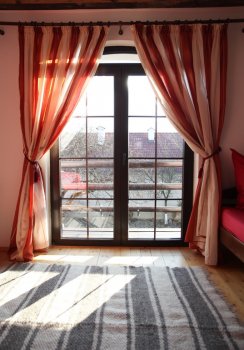 Avem cinci camere mari și luminoase, cu podele lucioase și paturi moi, numai bune de odihnă și leneveală. În ele se ajunge urcând o scară de bușteni din pădurile Făgărașului.În sufragerie, adesea mocnește focul în șemineu și e-ntinsă o masă mare și bogată, cu cele mai gustoase mâncăruri, gătite de tanti Mariana.